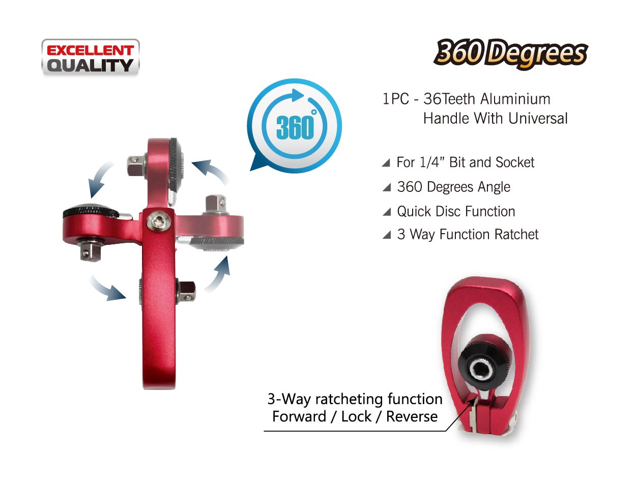 1 Pc- 36Teeth Double-End Aluminium Handle With Universal