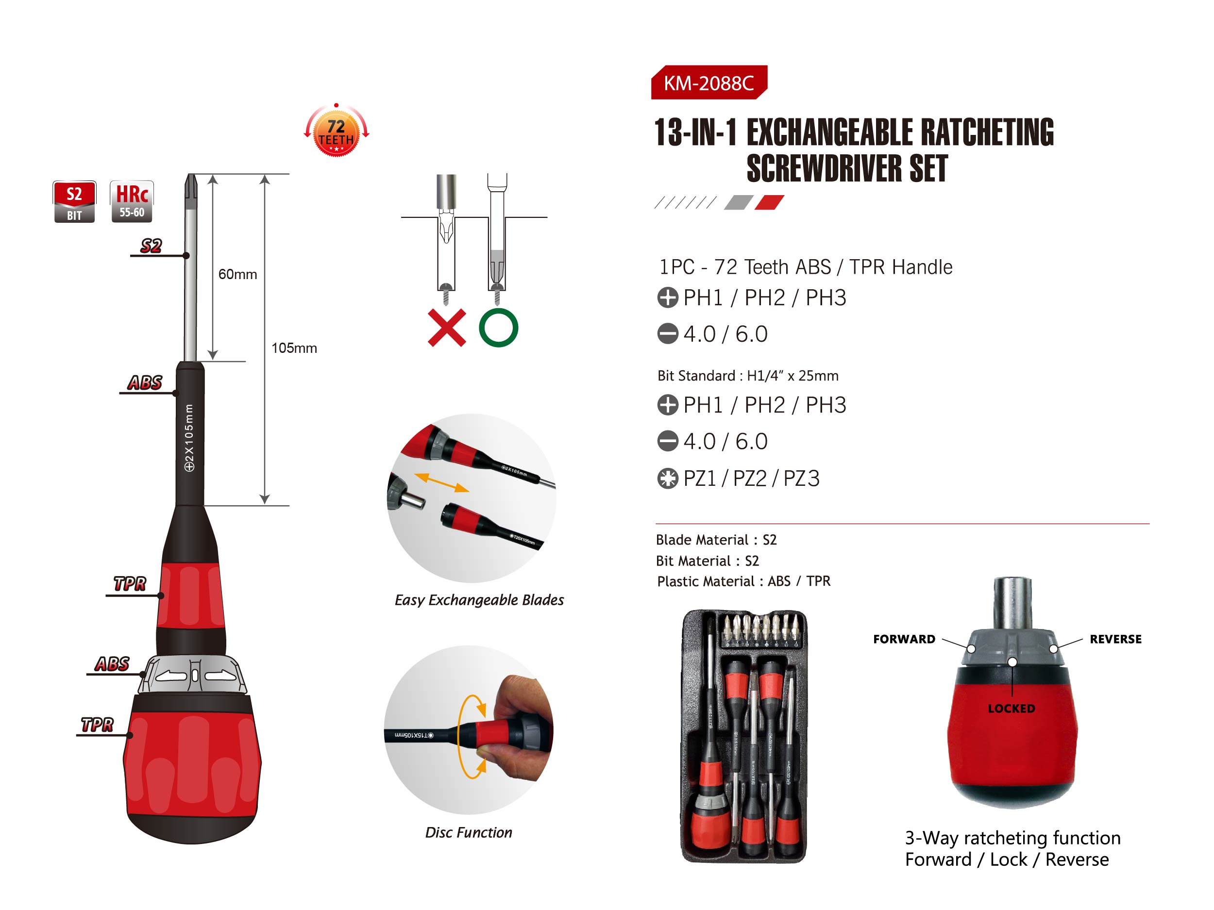 1 Pc- 72 Teeth Handle with 3-Way Function (Reverse/Lock/Forward)