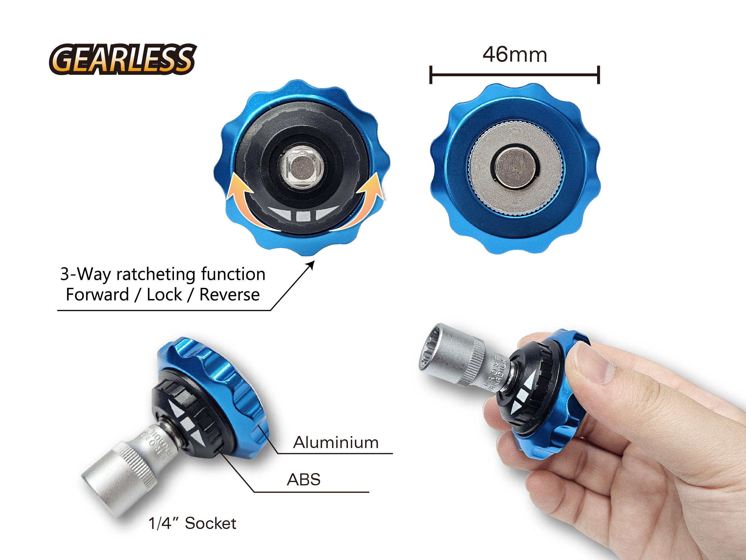 1 Pc- Gearless Aluminium Handle with 3-Way Function (Reverse/Lock/Forward)